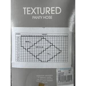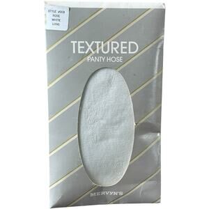 VTG Mervyn’s Rose Textured Nylon Pantyhose White Style 909 Sz USA Sz Long Large