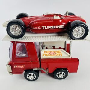 VTG Metal Buddy L Turbine Transport Truck with Original Red Car Pressed Steel