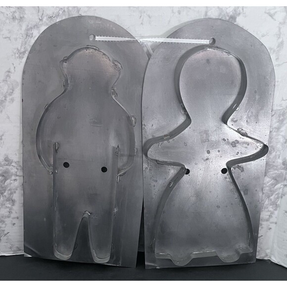VTG Metal Gingerbread Man & Woman Couple Cookie Mold 16 in Set Wedding Primitive