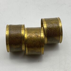 Add a touch of elegance to your dining table with this set of 17 vintage metal napkin rings. The assortment includes both silver and gold finishes, each with unique ornate designs that add character to your table setting. Made of brass and nickel materials, these napkin rings were crafted in India and feature a round shape that fits most napkin sizes. Perfect for special occasions or everyday use, these original napkin rings are sure to impress your guests.