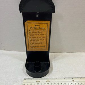 VTG Metal "Rules of the Tavern" Wall Standing Taper Candle Holder Plaque 3.25x9"