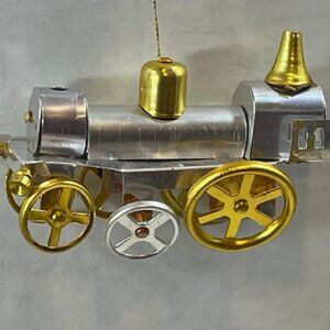VTG Metal Two Tone Train Engine Hanging Christmas Holiday Ornament 4"