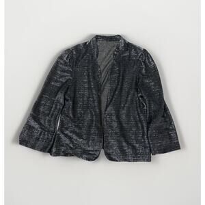 VTG Metallic Sheer Mesh Blazer Women S/M Black Glitter Party Club Rave NYE Chic
