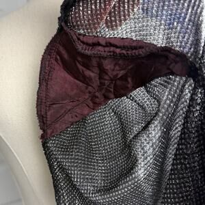 VTG Metallic Sheer Mesh Blazer S/M Black Office Siren Glitter Party Club Rave NYE