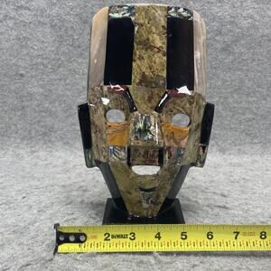 VTG Mexican Handmade Mayan Aztec Stone Burial Death Mask Abalone Onyx 9.5 In.