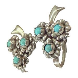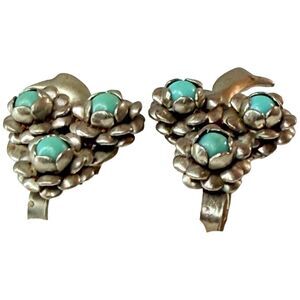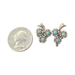 VTG Mexico Blue Turquoise Flower Earrings 7/8" 925 Sterling Silver Grapes