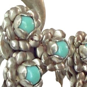 925 Sterling Silver Blue Turquoise Flower Earrings 7/8" VTG Mexico Grapes