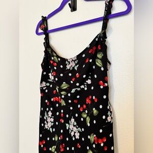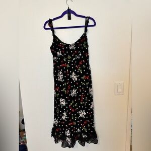 Vintage, Y2K, 90s, Slip Dress, Midi, Ruffle, Cherries, Floral, Fruit, Girly, Maternity