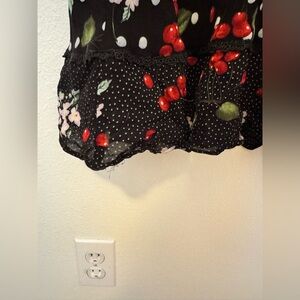 VTG Mica Mimi Maternity Y2K Cherry Floral Midi Dress Ruffle Large Black EUC