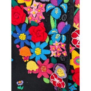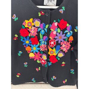 VTG Michael Simon Felted Flower Heart Beaded Cardigan Sweater Medium