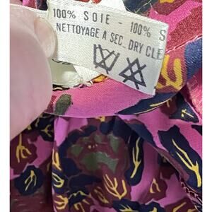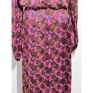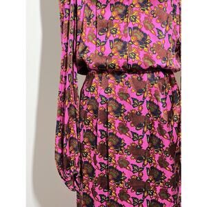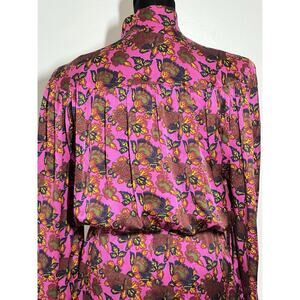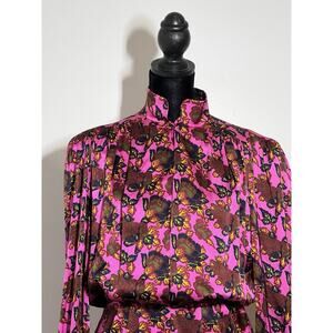 VTG Michel Goma Saks Vibrant Pink Floral Silk Long Slv Dress France 42 US M/L