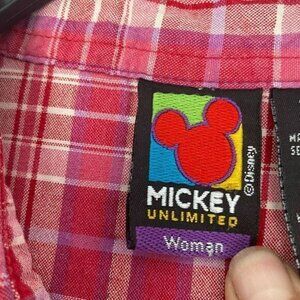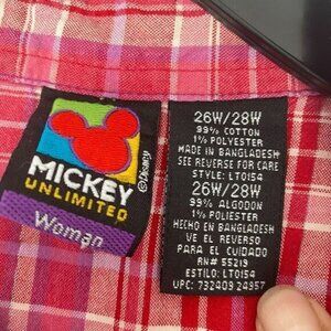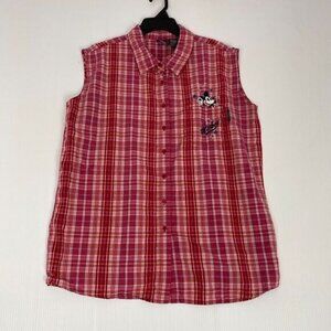 VTG Mickey Unlimited Disney Size 26/28 Women Top Red Plaid Embroidered sleeveles
