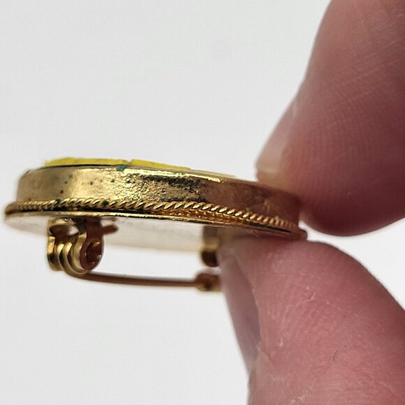 VTG Micro Mosaic Brooch Pin Gold Tone Floral Yellow Pink Orange Red