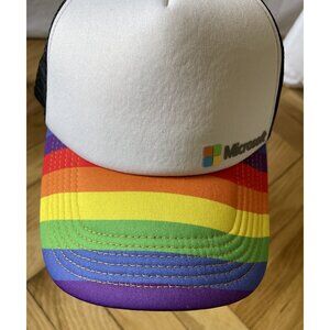 VTG Microsoft Trucker Hat Rainbow SnapBack Windows Computer Retro Cap Nerd Y2K