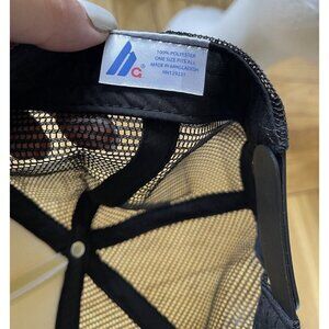 Made of durable polyester material, this hat is lightweight and perfect for everyday wear. The unique design and vintage vibe make it a great addition to any collection. This hat was manufactured in Bangladesh and is a one-size-fits-all Trucker hat.