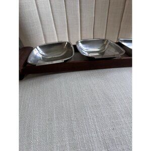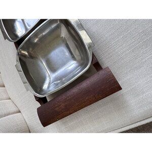 VTG Mid Century Arthur Salm Stainless Steel & Teak Wood 3 Serving Dishes Sweden