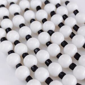 VTG Mid Century Black White Bib Necklace Molded Beads Hook Clasp 1950s 60s