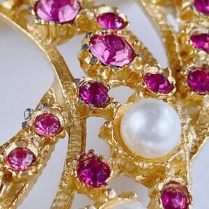 Materials: Gold-tone metal; fuchsia rhinestones; faux pearls