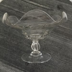 VTG Mid Century Duncan & Miller Canterbury Crimped Compote Clear Glass 7" EUC