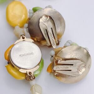 VTG Mid Century Necklace & Clip Earrings Set Beaded Pastel Stamped Hong Kong