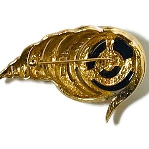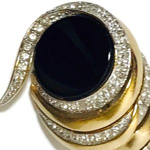 Amazing Vintage Estate, Mid Century Mod PANETTA Chunky Black Art Glass Cabochon Pave Rhinestone Gold Tone Brooch Pin.