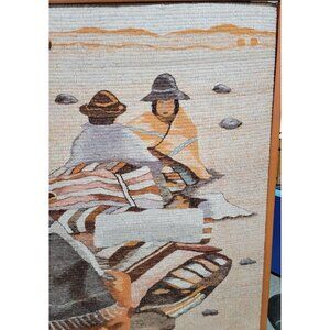VTG Mid Century Peruvian Folk Woven Wall Tapestry Cultural Art Women Peru Hangin