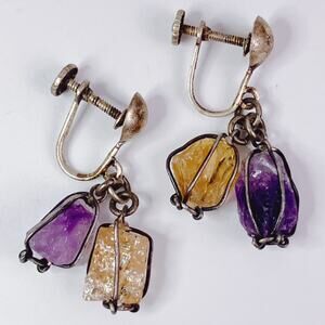 Condition: Very good used / vintage condition. Some finish loss on silver-plated earring hardware; patina on silver wire; screw backs functional. Review all images carefully for condition. Ships from a smoke-free environment.