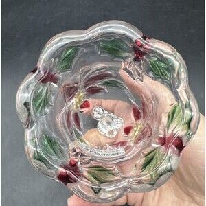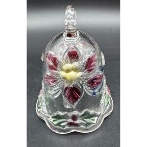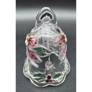 VTG Mikasa Christmas Bell Crystal Frosted Glass Poinsettias Made In Germany 4.5”