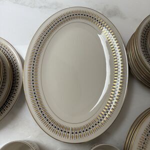 Keyword tags: vintage, mid century modern, MCM, bone china, mikasa, made in Japan, ivory china, discontinued, gold rimmed, gilded, heirloom, thanksgiving, holiday, feast, hostess, party, fall, winter, retired pattern, diamonds, dots, geometric