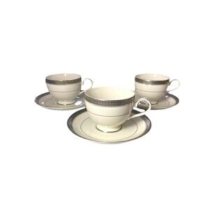 VTG Mikasa Palatial Platinum Fine China Cup and Saucer Set For 3 *READ