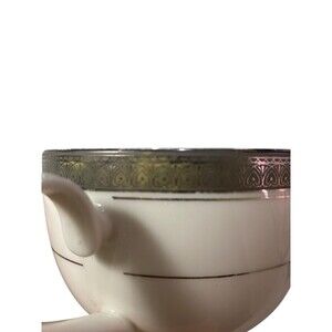 Elevate your tea time with the vintage Mikasa Palatial Platinum Fine China Cup and Saucer Set. Designed for elegance and versatility, this trio of cups and saucers is perfect for serving guests on any occasion. Crafted from premium fine china with a radiant platinum trim, the set exudes a timeless sophistication that complements any table setting.