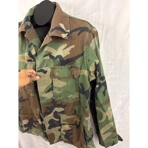VTG Military Coat Mens LARGE Long Woodland Camo Combat 90s Army
