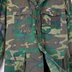 Pre-owned Vintage Military USMC Shirt M RDF ERDL Camo 70s Jungle Jacket Coat Hot Weather Ripstop. 100% Cotton. Vent hole under cargo pockets. Straight Pockets.
