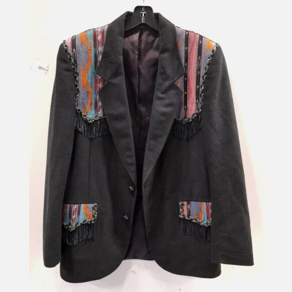 Fringe, tassels, beaded, embroidered yoke, sequins, Cowboy Western Ranch Yoke Rodeo Rockabilly Suit Jacket Business Formal Professional Office Career Casual Bolo Country Outlaw Classic Arrow Trim Equestrian Square Dance Line Dance Dancing Vintage Look