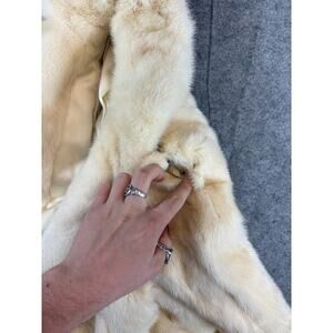 Vintage Millsstein Sulak Faux Fur Coat Womens Medium Cream Double Breasted Winter Glam Elegant