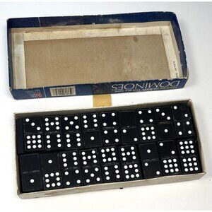 VTG Milton Bradley MB Wooden Dragon DOMINOES Double Nine 55pcs Black 4132 w/ Box