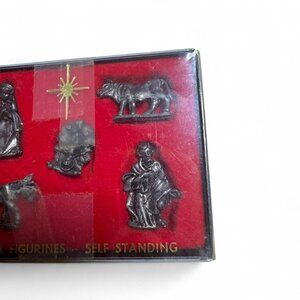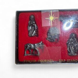 VTG Mini Pewter Nativity Figurines. Box has been taped. There is some tarnishing. Can post more pictures if needed.
