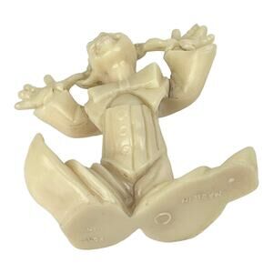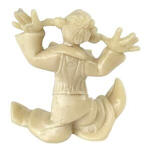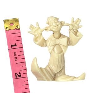 Vintage Miniature CLOWN FIGURINE 2.25" Hard Cream Plastic Decor Cake Topper Made In Hong Kong -Excellent Condition!