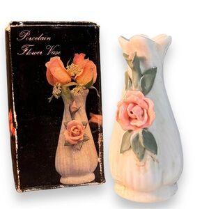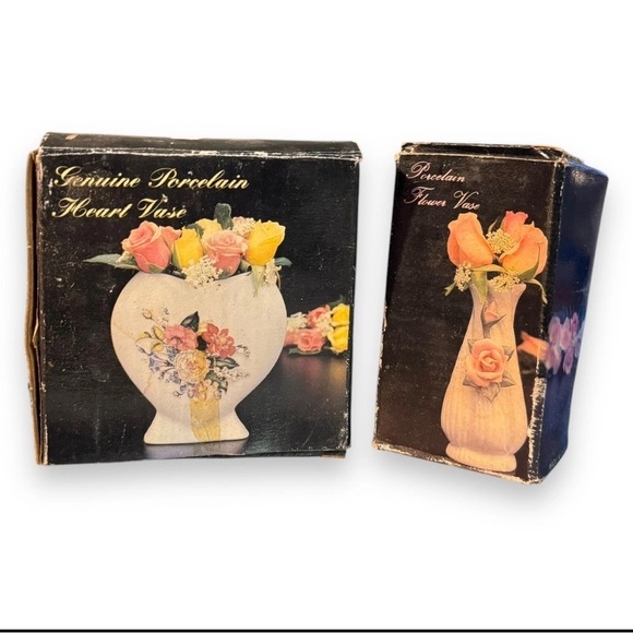 VTG Miniature Genuine Porcelain Rose Bud Vases 1 Used 1 New Both W/ Original Box