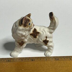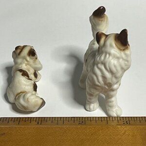 VTG Miniature Mama Cat & Kitten Porcelain Figurines White Brown Blue Eyes 2"