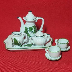VTG Miniature Teapot Set Ivy Green Leaves 10 Pc