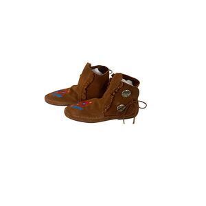 VTG Minnetonka USA Warm Brown Leather Ankle Moccasins w/ Buttons & Box