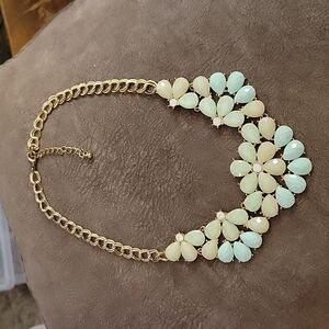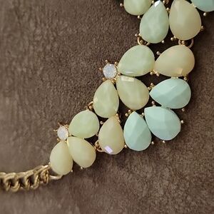 VTG Mint Teardrop Floral Bib Chain Necklace