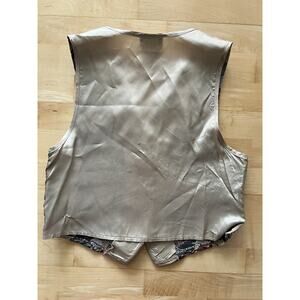 VTG Mirror Tapestry Beige Tan Motorcycle Printed Tuxedo Vest Cotton M