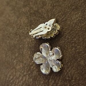 Flower earring is a post and is 1.25". Rhinestone cluster earring is a Clip-on and is 1.25".