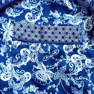 Miss Elaine Pajama Set Women’s Small Blue Print Soft Long Sleeve Button Front The top one (button) is missing in Very good Condition Pre-owned"