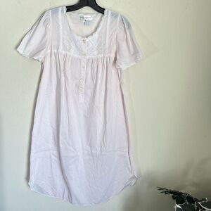 VTG Miss Elaine Women's Mid-Length Nightgown Short Sleeve Lace Baby Pink Size M