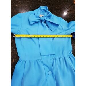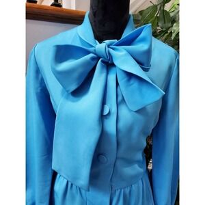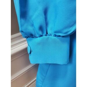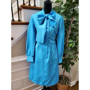VTG Misscontinental Blue Polyester Long Sleeve Buttons Front Knee Length Dress