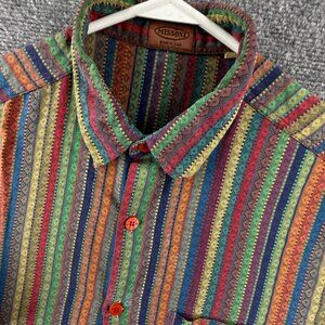 VTG Missoni Italy Abstract Colorful Striped Button Up Shirt Size 52 Short Sleeve