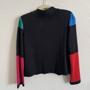 VTG Mita Sweater Size 6P Krinkle Spun Colorblock Gold Zip Front Cardigan